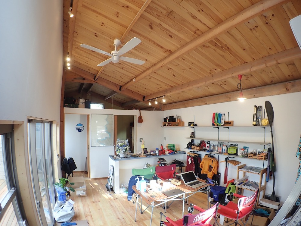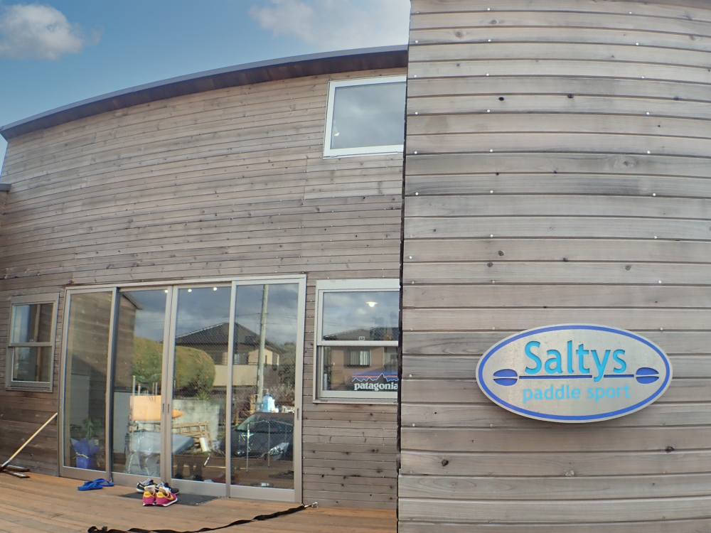 クラブハウス・艇庫 ソルティーズのクラブハウスは館山湾の海岸から徒歩5分の場所にありますカヤック用品の販売スペースには、スタッフ選りすぐりのウェア・パドル・カヤック用品、カヤック雑誌などが陳列されています奥には明るくキレイな更衣室、パウダールームもご用意しております